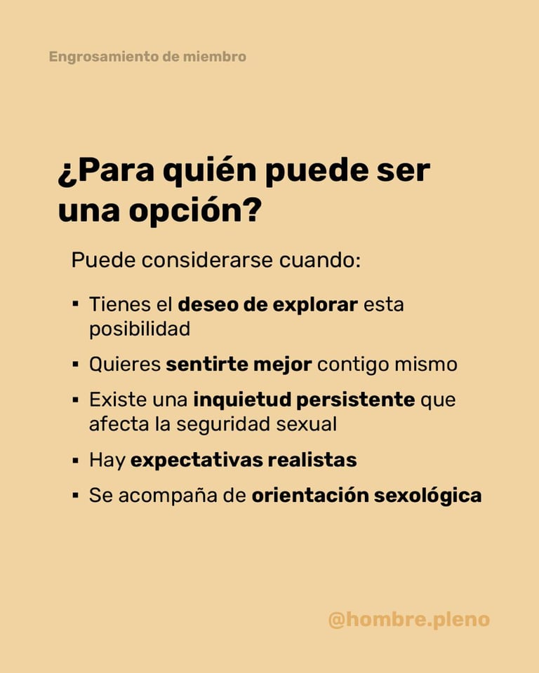 Requiere cita de valoración previa. En esta consulta resolvemos dudas, evaluamos tu anatomía, estado de salud, expectativas y te explico de manera realista los alcances, tiempos y cuidados del tratamiento